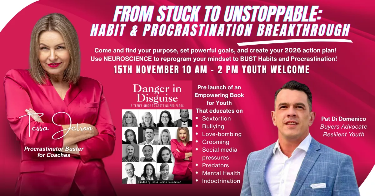 Procrastination is a common challenge that can hinder your progress and keep you from reaching your full potential. This "Live-In-Person" event is your opportunity to break free from this cycle and embrace a more productive, proactive lifestyle. Whether you want to excel in your career, pursue your passions, or simply lead a more organised life, this event will equip you with the tools and mindset needed for lasting change.